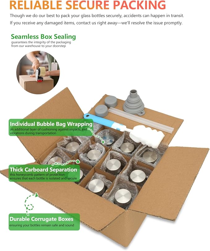 - SAVE MONEY WITH THIS VALUE PACK: Juicing Kit Bundle includes : 4 pack Zukro clear glass juice bottles with airtight lids, a bottle cleaning brush for easy hand washing, a funnel helps you pour liquids inside the glass containers, 1 pc rubber silicone lids with straw hole, 1 pc reusable straw. Get our juicing bottles in bulk packs as gift for your whole family and friends.