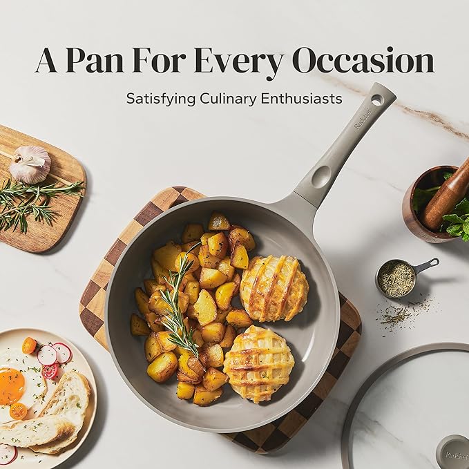 - TOXIN-FREE SAFETY: Crafted with health-first innovation, our ceramic surface contains absolutely no PFOA, PFOS, lead, or cadmium. This ceramic frying pan with lid giving you peace of mind for family meals for safe everyday use