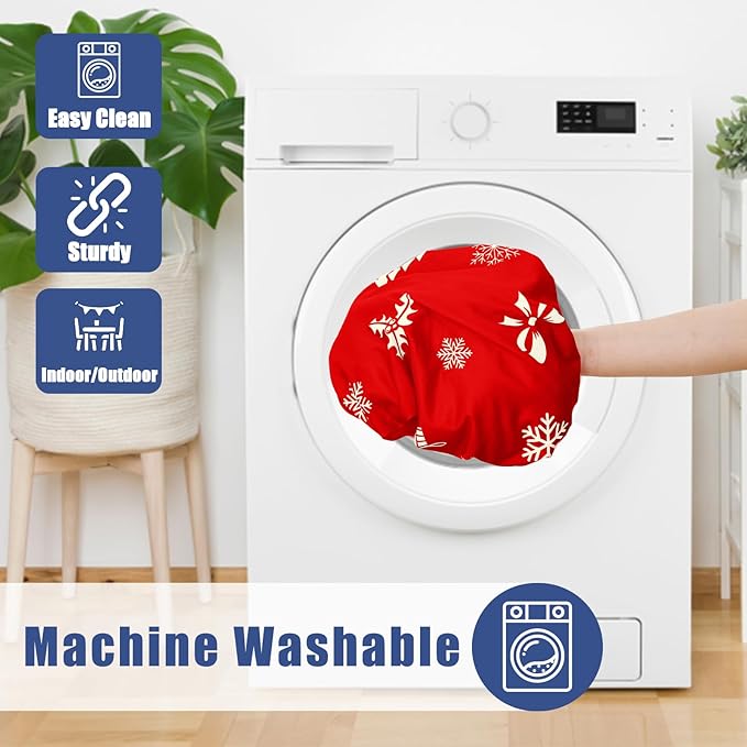 Round Spandex Christmas Tablecloth, Elastic Fitted Waterproof Tablecloths for 36"-44" Tables, Stretch Washable Picnic Table Cover for Christmas Dinner, Box Snowflake