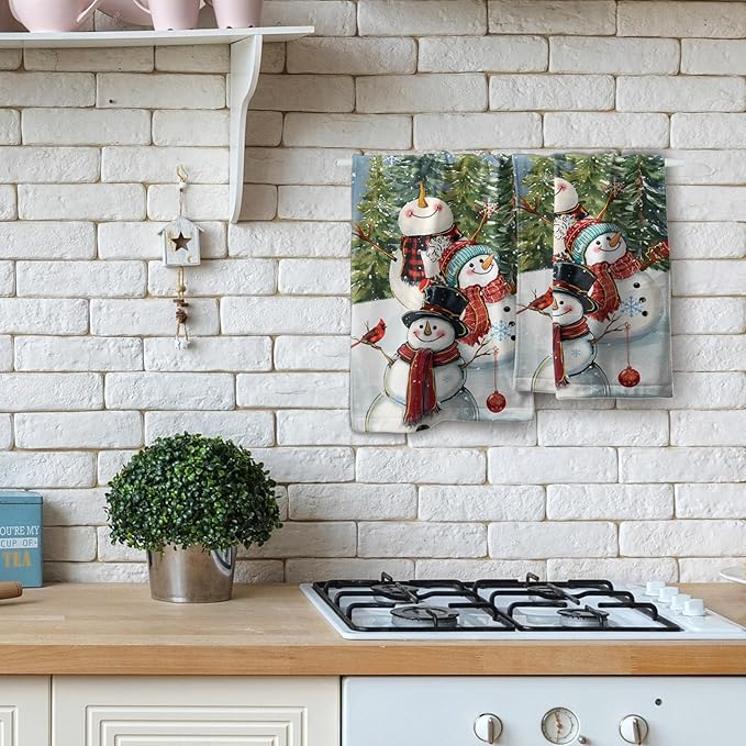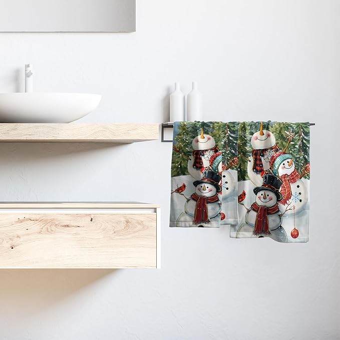 - ☃【Color & Design】Brilliant colors, unique pattern will automatically make towels stand out, and finished edges will prevent unravel. Snowman hand towels are the perfect complement to winter kitchen decor, add fresh flair to your home decor.