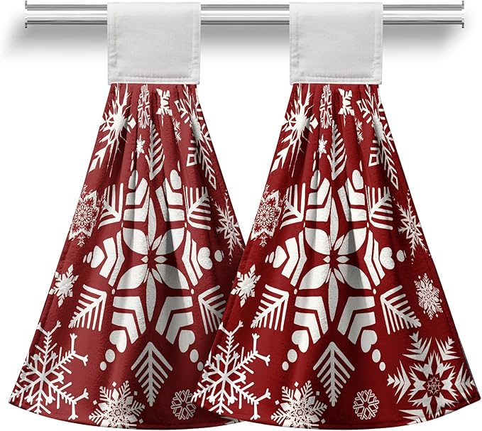 - Ideal Gift: This Christmas snowflakes bathroom tie towel enhances a warm holiday atmosphere. Kitchen towels with hanging loop are an perfect alternative to paper towels. It also a wonderful household gift for family, friends, colleagues, holidays, housewarming
