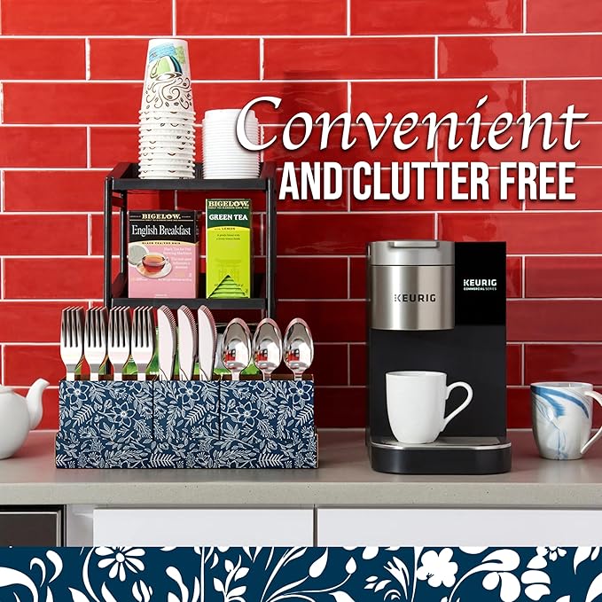- NEW PATENTED DESIGN: Introducing the caddy utensil holder with silver cutlery simply tear on the perforated lines and remove the tops to easily convert in to a fast and fashionable easy to use solution for silver plastic utensils the best office and kitchen utensil organizer