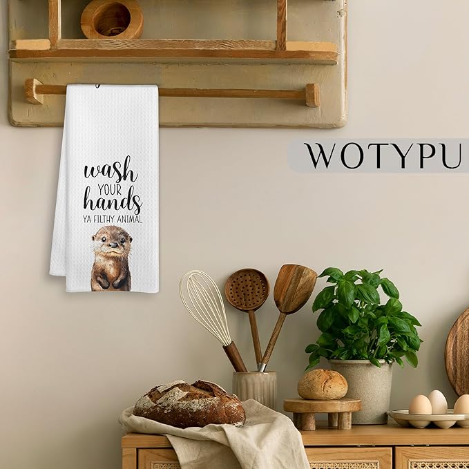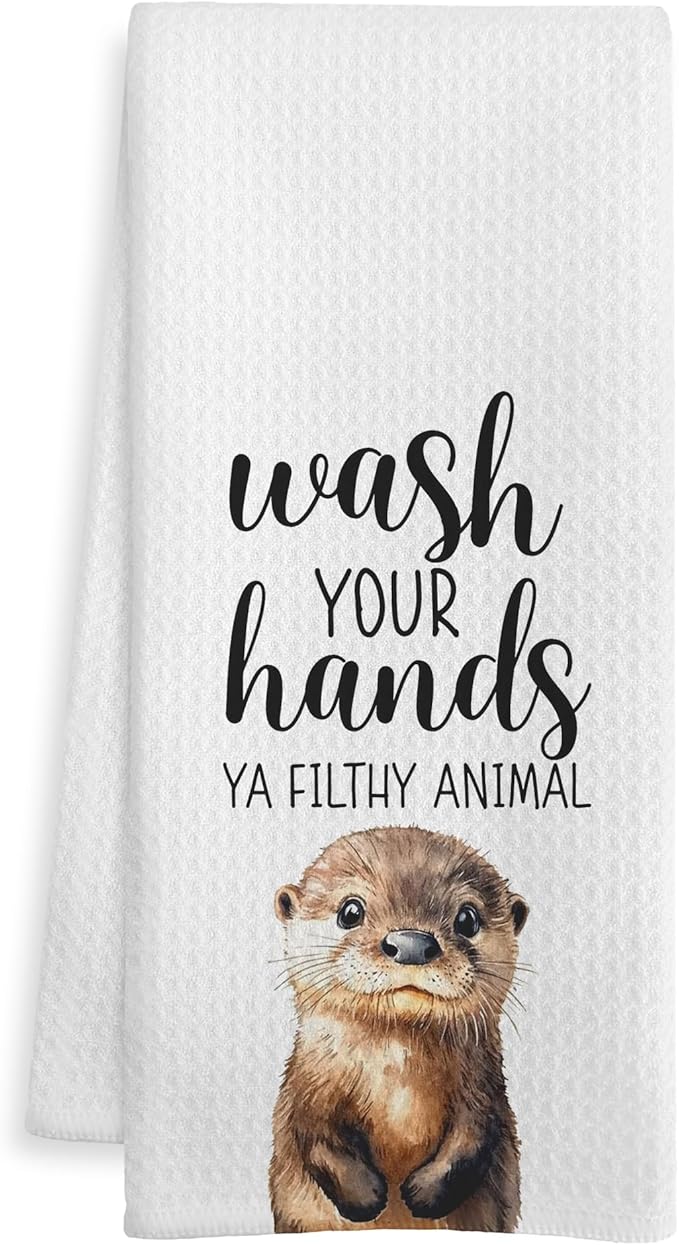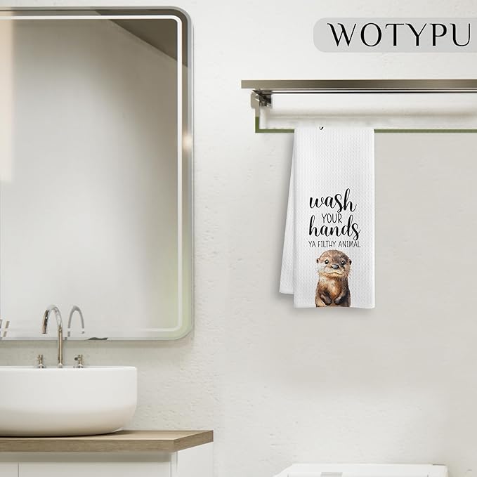 Sea Otter Gift Hand Towels for Bathroom, Wash Your Hands Ya Filthy Animal, Otter Lover Gifts, Otters Lovers Gifts Decorative Hand Towels for Kids Guest Bath Room Washroom Half Bath, 16x24 Inch