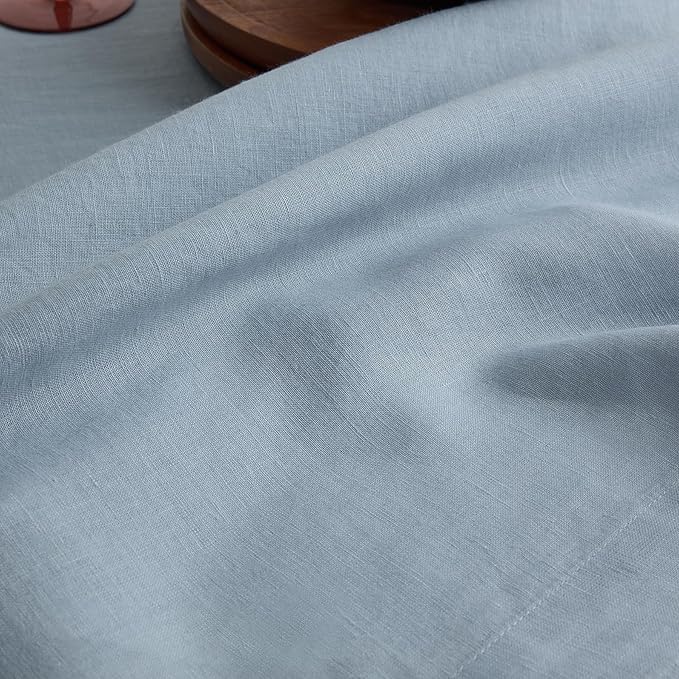Solino Home Dusty Blue Linen Tablecloth 70 x 120 Inch - 100% Pure Linen Table Cloth for Rectangle Tables - Sonoma, Machine Washable Tablecloth for Winter