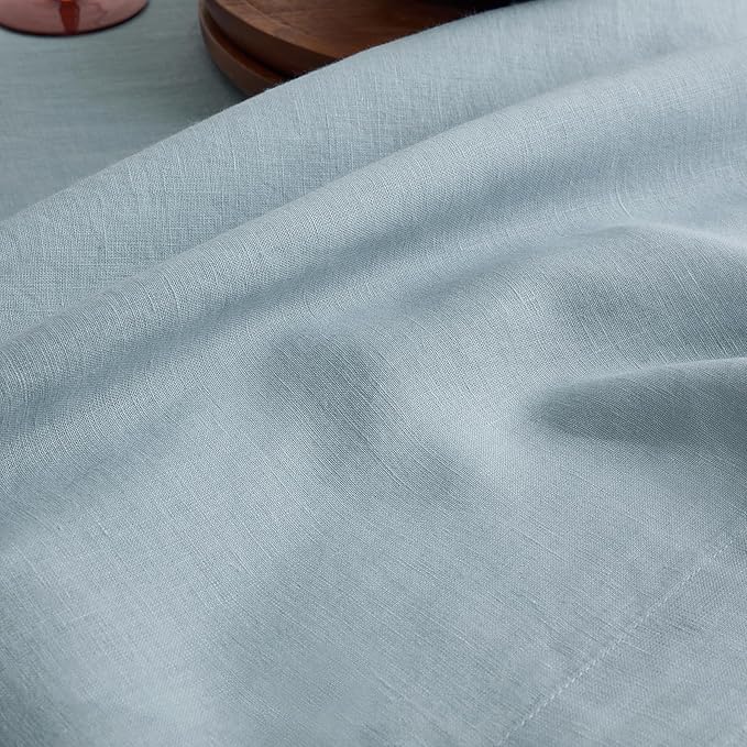 Solino Home Linen 60 Inch Round Tablecloth - 100% Pure Linen Dusty Blue Round Tablecloth - Machine Washable Table Cloth - Sonoma