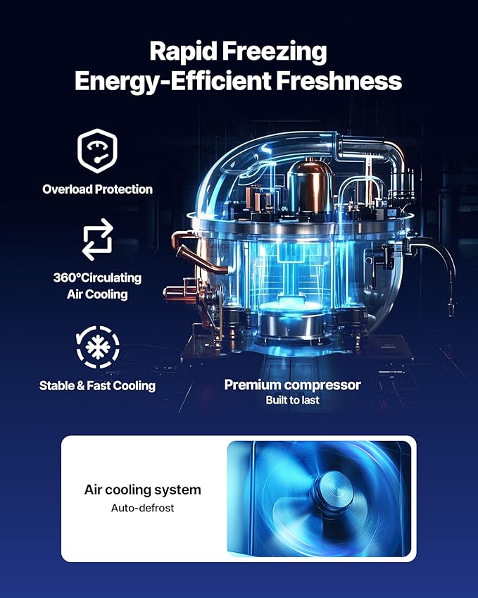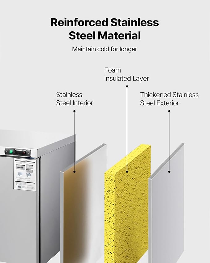 - Quick Freezing: This food prep fridge features an Embraco compressor and finned copper tubes for even, reliable cooling and long-lasting freshness. Complies with UL, CSA tested standards and DOE efficiency regulations