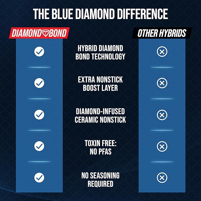 - DIAMOND BOND HYBRID TECHNOLOGY: Our proprietary technology fuses tri-ply stainless steel with a laser-etched, diamond-textured surface and a PFAS-free ceramic nonstick coating. This combination delivers 10X more durability, 6X faster heat response, and 4X longer-lasting nonstick.