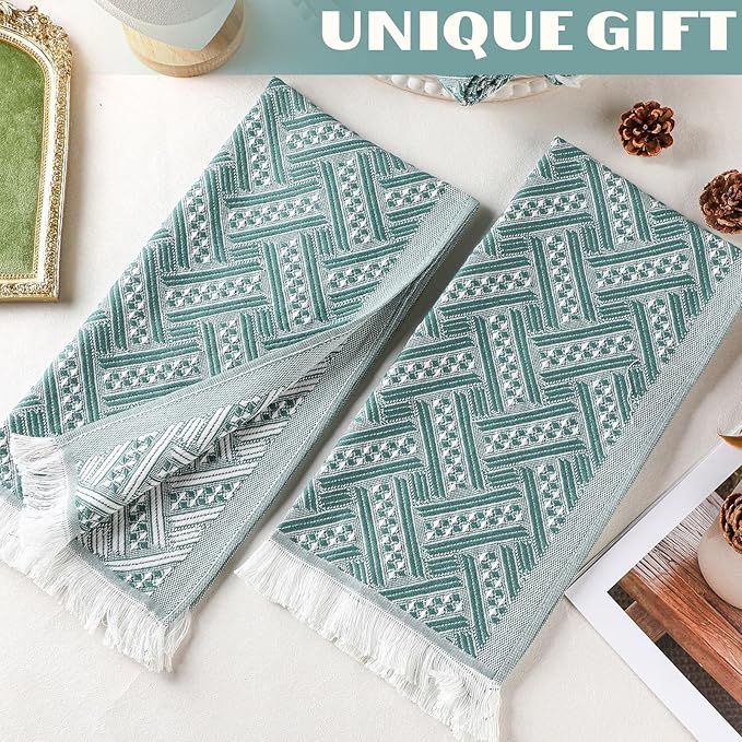 - Meet Diversity Needs: you'll receive 4 pcs 14 x 30 inches hand towels at a time, a size that's not too big or too small; This 4 packs authentic boho towel set is made of green and white two-tone yarn-dyed, which will meet your daily life in different scenarios