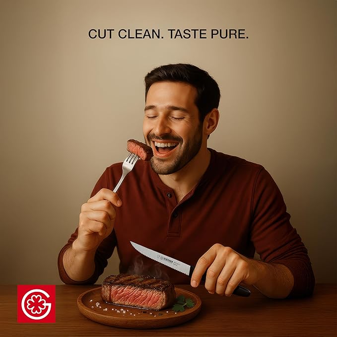 - READY FOR REAL VALUE. Made from hardened German steel with over 249 years of experience. These steak knives don’t just cut better – they make every steak meal feel better.