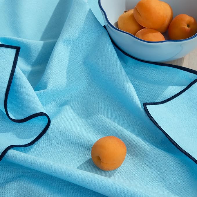 Kate Spade New York Garden Party Embroidered Edge Napkins 4-Pack Set, Cotton-Linen Machine Washable, Blue/Navy Blue, 20"x20"