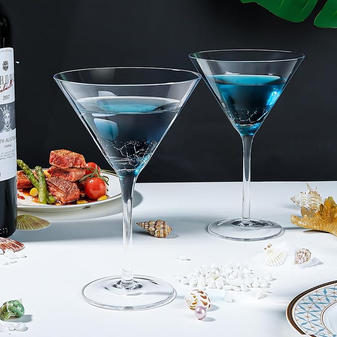Joeyan Handmade Blue Crackle Martini Glasses,11 oz Crystal Cocktail Glassware,Drinking Glasses for Espresso Martini Cosmopolitan Manhattan Gimlet,Set of 2