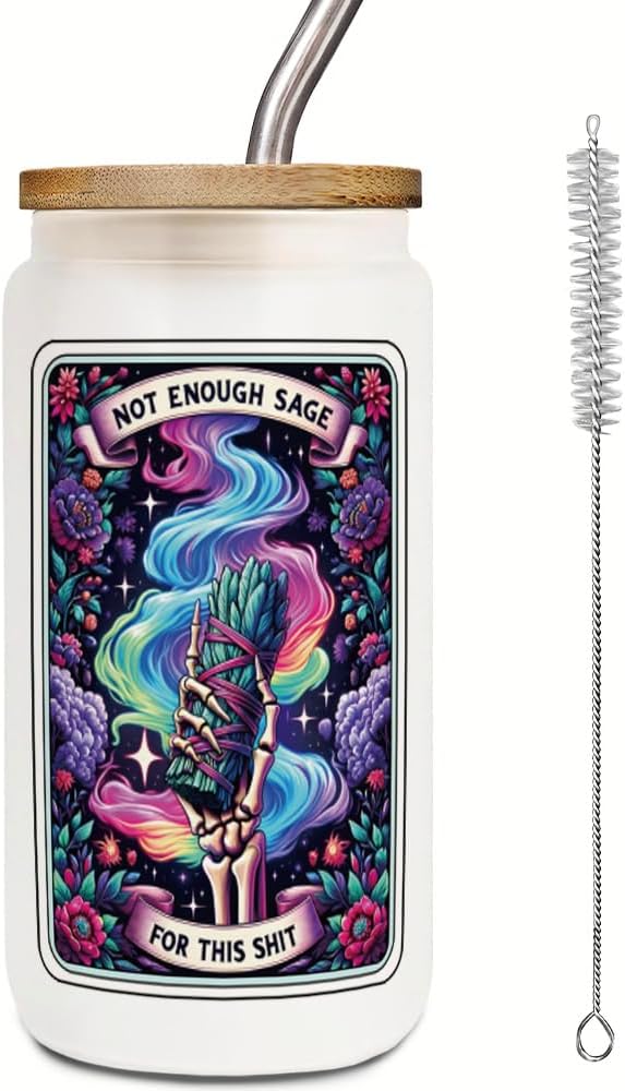- 2.Superior quality: Made of premium thick glass, ensures durability and long-lasting use, BPA-free materials, 16oz big capacity holds many types of drinks without affecting its natural taste. The high-quality printing ensures that the design remains eye-catching and won't fade or peel easily.