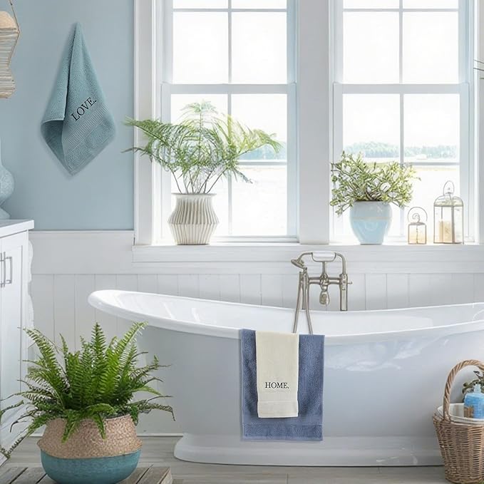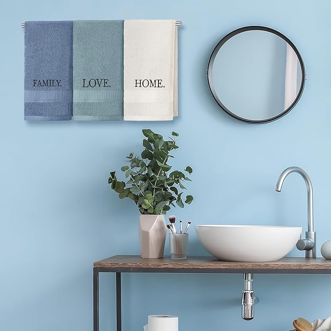 - Embroidery Design: each hand towel's edge is cleverly adorned with heartwarming words: "Home, Love, Family "; These words are delicately embroidered, showcasing refinement and beauty with every stitch, not only enhancing the towel's artistic appeal but also imparting a unique emotional value