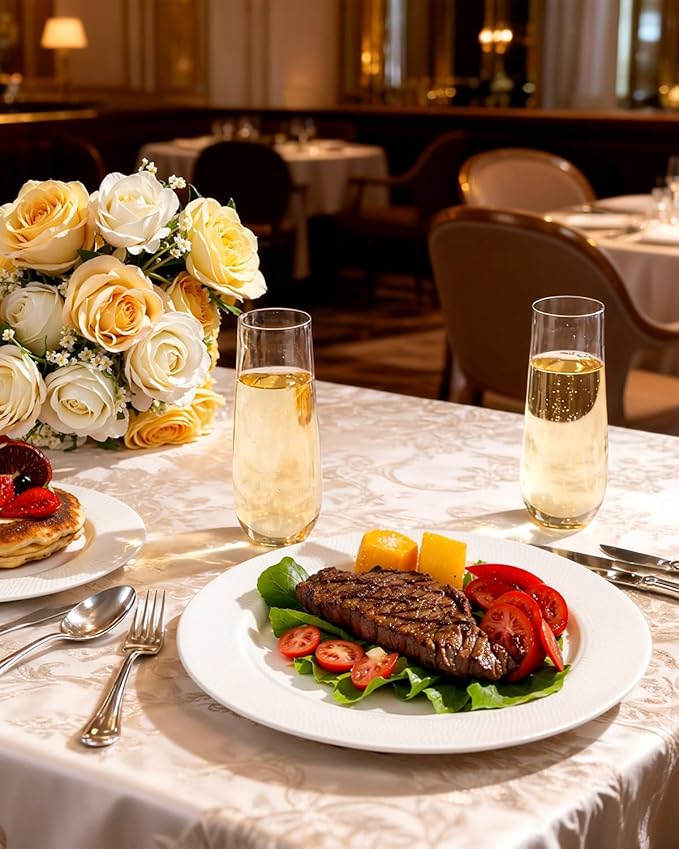 - Multi-scenario use: The 9 oz clear glass champagne flutes can match any color of drink, such as serving champagne, mimosas, bubble cocktails and more. These plastic wine glasses can be used for upscale weddings, dining, banquets, parties and outdoor uses such as terraces, beaches, etc.