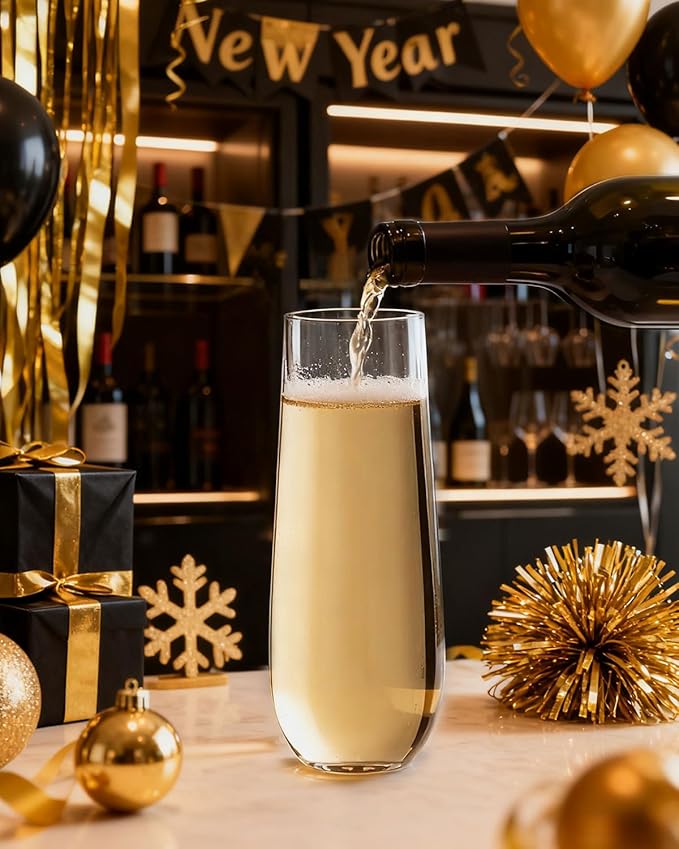 - Save time: The package includes 24 packs of 9 oz stemless champagne flutes, premium plastic drinking glasses to save you time and effort and enjoy your event without having to worry about post party chaos.