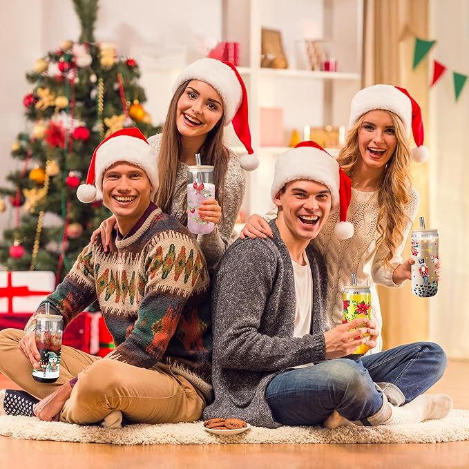 - Enchanting Christmas Design: Bring holiday cheer to your drinks with our exclusive Christmas-themed glass cup! Featuring vibrant festive patterns—red cardinals birds, yellow stars, pine cones, bells, poinsettia flowers, and green holly, this cup is the perfect Christmas surprise. Whether you're shopping for a best friend, sister, wife, or husband, this heartfelt gift is sure to delight.