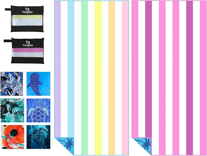 2 Pack Microfiber Lightweight Thin Beach Towel Sand Free Quick Dry Super Absorbent Large Towels for Swimming Pool Yoga Gym Travel Vacation Beach Accessories Essentials Stripes