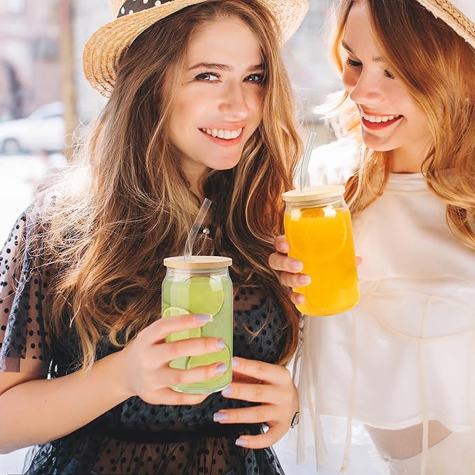 - SMART LIDS; Crafted for cleanliness, our reusable iced coffee cups feature bamboo tops that resist grime and odor; These glass tumblers with lids and straws offer a natural touch that stays fresh