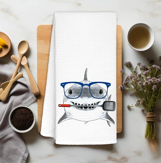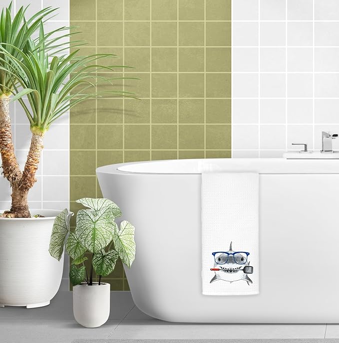 Shark Hand Towels,Kitchen Decor,Beach Towels,Coastal Beach Kids Bathroom Decor,Funny Shark Lovers Gifts 16x24 Inch
