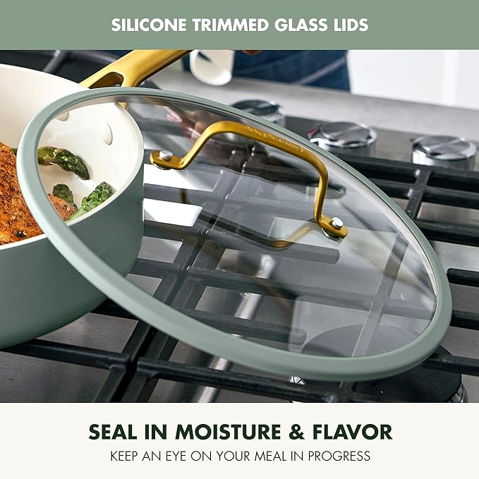 - DURABLE DOMED GLASS LIDS: The tempered glass lids feature a silicone rim to lock in heat and moisture so you can watch all the action on the outside.
