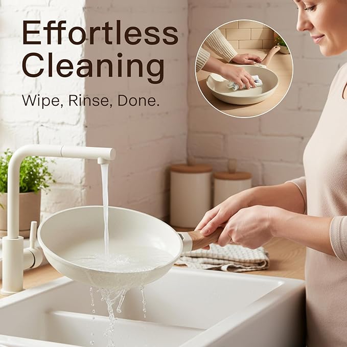 - 100% NON-TOXIC& HEALTH SAFE: Made with a PFOS, PFOA, and Teflon-free ceramic coating for a safer cooking experience.