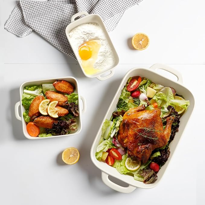 - Meet All Baking Needs - The ceramic rectangular baking dish set can be used for heating and storage of bread, pasta, lasagna, casserole, chicken, barbecue, beef, vegetable food, to meet your different needs