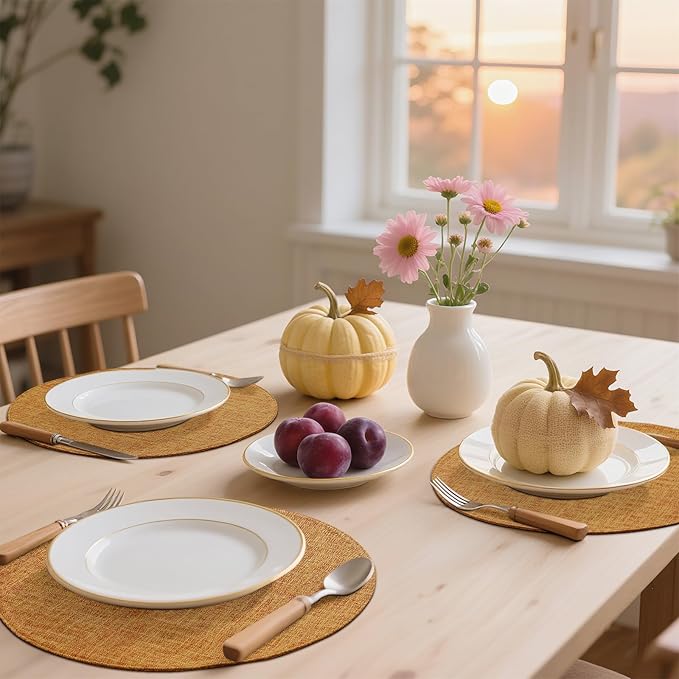 homing 15 Inch Round Cloth Placemats Set of 6, Cotton Linen Blend Washable Table Mats, Farmhouse Dining Place Mats for Indoors & Outdoors, Easy to Clean, Amber