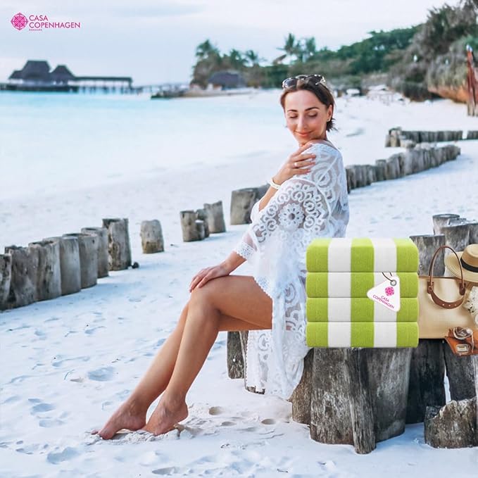 CASA COPENHAGEN Cabana Beach Designed in Denmark Rough and Tough, Quick Dry, Pool, Bath & Shower 30x60 inches 4 Pieces Cotton Beach Bath Towels Set - Green