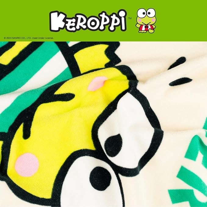 - KEROPPI DESIGN: Splash into fun with this adorable Keroppi Hooded Towel Wrap! Featuring Keroppi and his cheerful friend on a bright and playful design, this cozy towel is perfect for fans who love Sanrio’s happiest frog and all things cute and quirky.