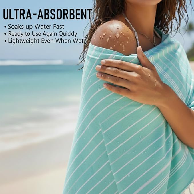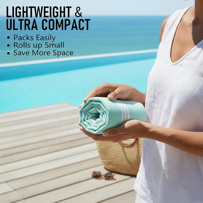 - LIGHTWEIGHT & TRAVEL TOWELS: Remarkably lightweight and compact, this turkish towel is a travel essential. It folds into a small space, saving crucial space in your luggage or beach bag. Its minimal weight and bulk make it the perfect companion for any adventure, from spontaneous trips to global tours.