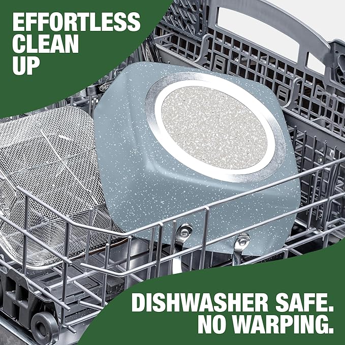 - EASY TO CLEAN: Granitestone cookware is designed for an effortless wipe down after using and is completely dishwasher safe allowing you to simply throw your cookware and bakeware in the dishwasher after using for a quick and easy cleanup experience.