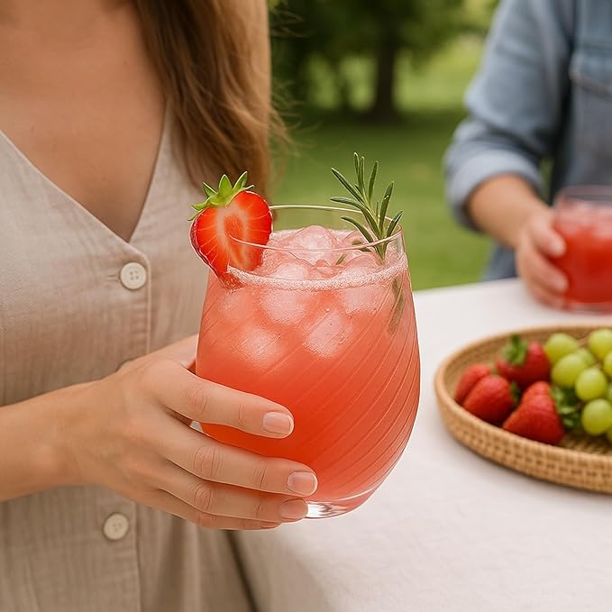 - Comfortable Sipping Experience: Experience the comfort of the aerodynamic shape and smooth rim of these stemless wine glasses. The design allows your wines to breathe, enhancing the aroma and flavor, and providing a comfortable sipping experience every time.