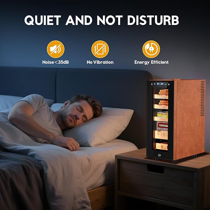 - 【Perfect Gift & Hassle-Free Service】Whether you are a seasoned cigar enthusiast or a beginner, this electric humidor is perfect for you. Especially suitable as a gift for your husband, boyfriend, father, coworkers, friends, on Father's Day, Valentine's Day, Birthday, Anniversary, Christmas, Thanksgiving, New Year's Day, and other festivals. We offer 12 months of worry-free support and 24/7 customer service to ensure your complete peace of mind.