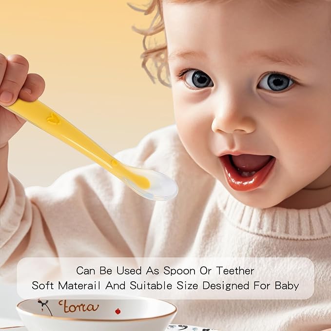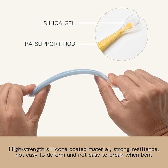- 【100% Safe Silicone】- Our spoons are made from high-quality food-grade silicone, which is gentle on babies' gums. The silicone texture makes babies enjoy eating, and the spoon material is soft enough to help relieve crying caused by gum pain during teething.