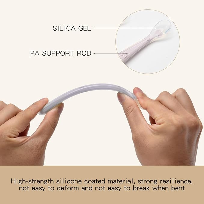 - 【100% Safe Silicone】- Our spoons are made from high-quality food-grade silicone, which is gentle on babies' gums. The silicone texture makes babies enjoy eating, and the spoon material is soft enough to help relieve crying caused by gum pain during teething.