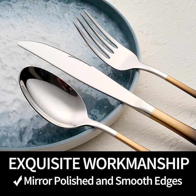 - 【Durable Construction】: Crafted from high-quality 18/0 stainless steel, this cutlery set ensures long-lasting durability and resistance to corrosion.