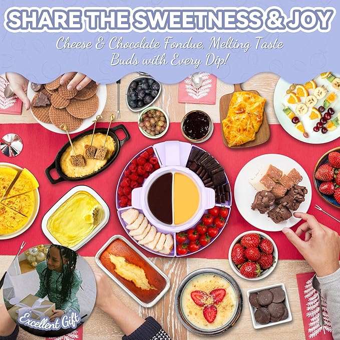 - [Host a Fondue Festival: Unforgettable Gatherings Await]: Rally your friends and family for an absolutely unforgettable fondue party! This fondue maker set is the ultimate addition to any social event, whether it's a lively game night filled with laughter, a cozy movie marathon under the stars, an intimate date night for two, or a standalone celebration of life's little joys.