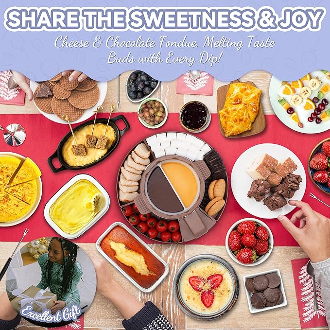 - [Host a Fondue Festival: Unforgettable Gatherings Await]: Rally your friends and family for an absolutely unforgettable fondue party! This fondue maker set is the ultimate addition to any social event, whether it's a lively game night filled with laughter, a cozy movie marathon under the stars, an intimate date night for two, or a standalone celebration of life's little joys.