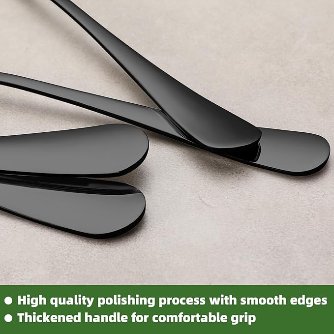 24 Pcs Black Forks and Spoons Silverware Set, Food Grade Stainless Steel Flatware Cutlery Set for Kitchen and Restaurant, 12 Dinner Fork(8") and 12 Teaspoon(6.7"), Mirror Polished, Dishwasher Safe