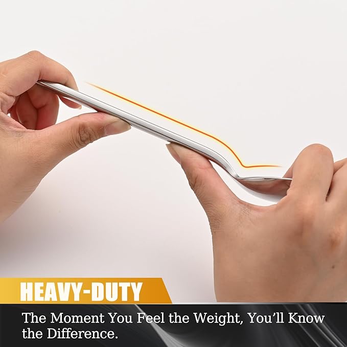 - Classic Style Design: This flatware set features a simple design with rounded handles for a comfortable grip. Its sleek, modern look easily complements any table setting. Compared to regular flatware, it’s thicker, stronger, and more durable, giving you a more solid, high-quality feel with every use. Whether for everyday meals or dinner parties, it provides a reliable and sturdy experience.