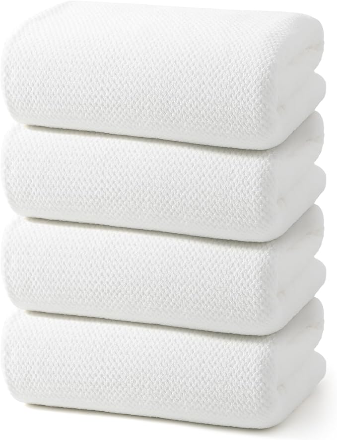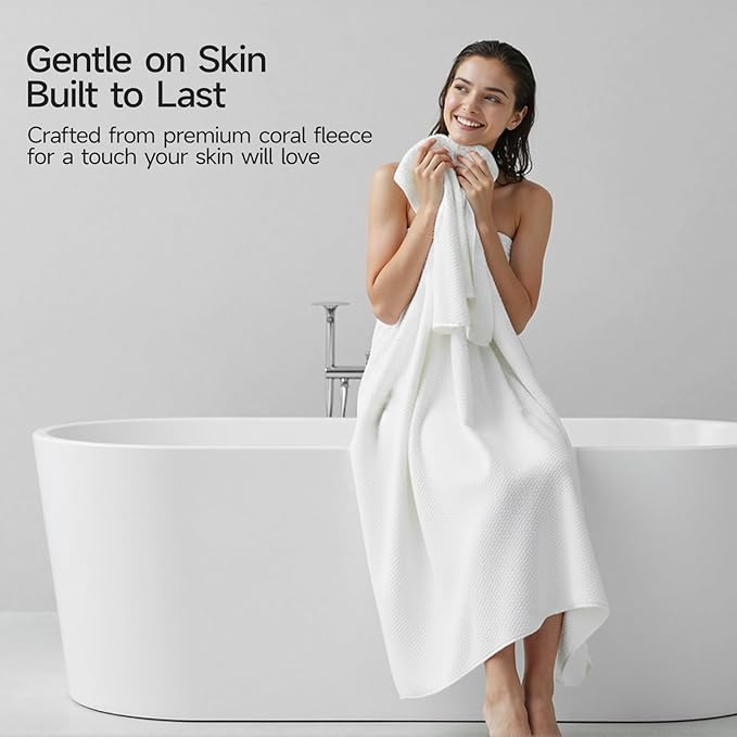 REDKISS 4 Pack Premium Bath Towels, Plush Coral Fleece Towels for Bathroom, Extra Large Bath Towels Set of 4 (35 x 70 in), Super Soft Highly Absorbent Shower Towels for Spa, Gym, Travel, White