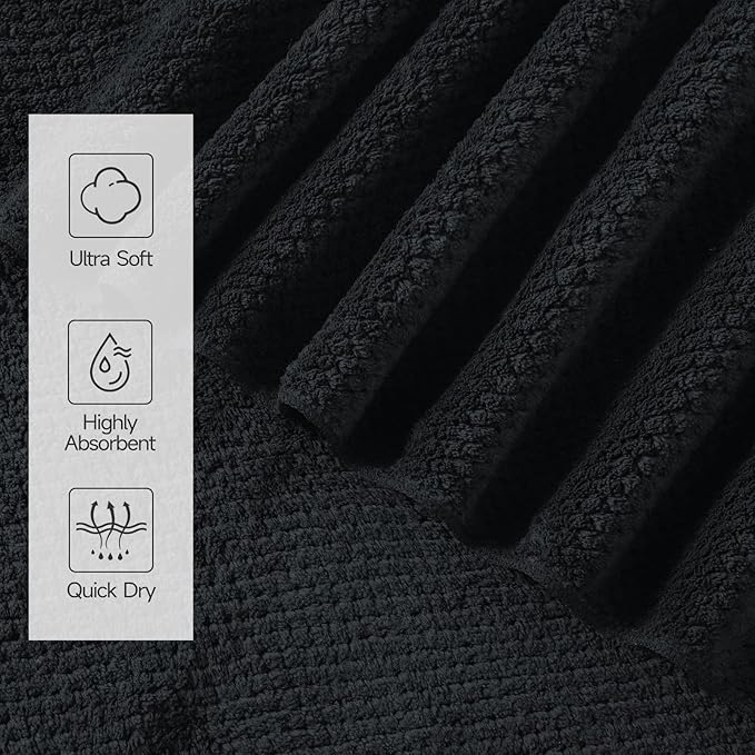 REDKISS Ultra Soft Bath Towels Set of 4-35 x 70 in Extra Large Coral Fleece Bath Towel, Highly Absorbent Plush Bathroom Towels for Adults, Quick Dry Towel Set for Spa, Gym, Travel, Black