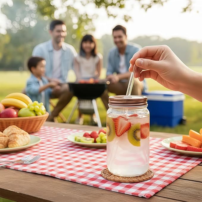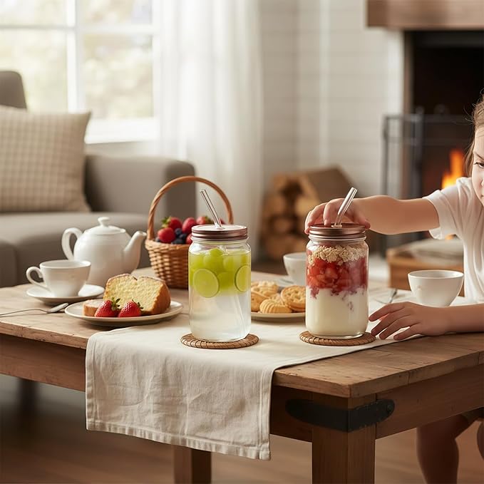 - Multi-functional Use:Glass tumbler with straw and lid suitable for various beverages such as iced coffee, cocktails, and juices, and can also be used as a home food storage container. The cups with lids and straws perfect for baristas, home mixologists, or ordinary tea drinkers. Suitable for cafes, gatherings, or daily hydration. The wide-mouth design makes it convenient to access and store grains, candies, spices, etc.