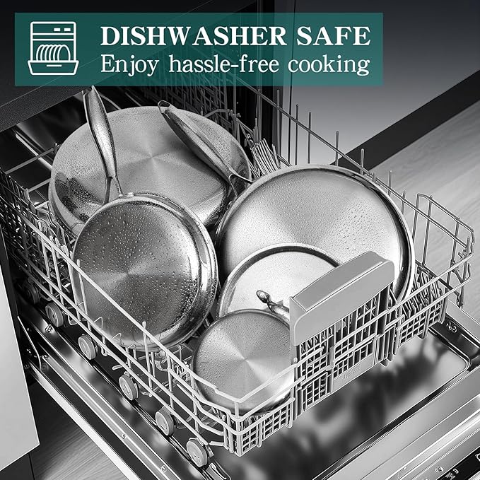 - DURABLE & SLEEK DESIGN: Each piece designed with durability and a sleek mirror finish exterior that is dishwasher-safe for added convenience and also have you cooking your absolute best.