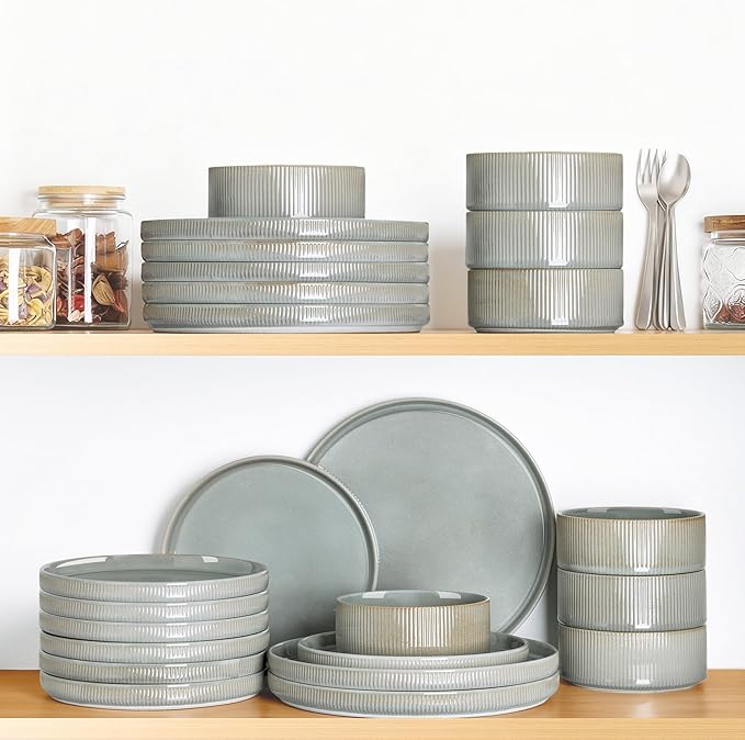- STACKABLE & EASY TO CLEAN: Our dinnerware set is designed to be stackable. making it ideal for space-saving storage in your kitchen cabinets or pantry. This design helps free up space for other dining sets. The smooth surface makes them easy to clean. You can wash them with soap and hot water, or simply place them into your dishwasher.