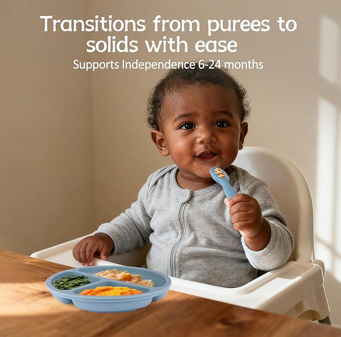 - Independent Feeding: The ergonomic thick contoured handle provides a secure, non-slip grip, and the spoon's smooth, lightweight edges help toddlers develop motor skills and independence, encouraging babies to eat independently and promoting healthy eating habits.