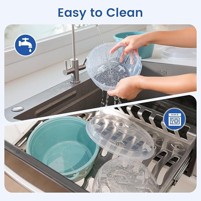 - BPA-Free & Dishwasher Safe: Made from durable, BPA-free plastic, both the lid and steaming rack are dishwasher safe for easy cleaning