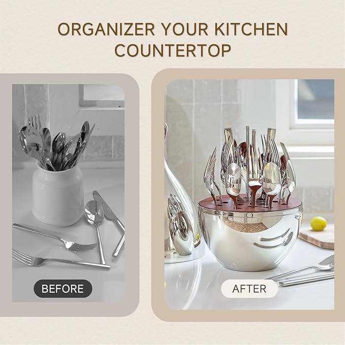 - Artistic “Waterdrop” Storage Organizer:Unique water-drop shaped design. It’s not just a dedicated “home” for your cutlery, but also an artistic decor for dining tables or kitchens! Say goodbye to cluttered cutlery piles and find utensils at a glance!