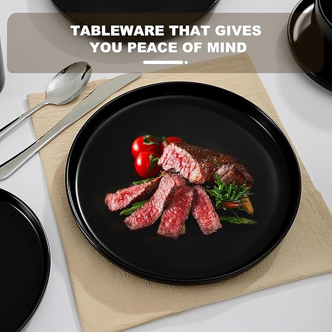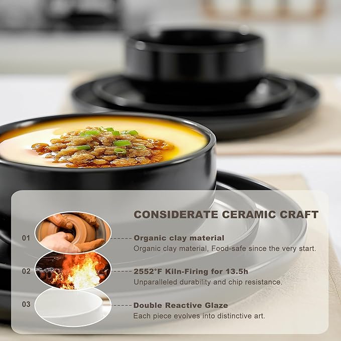 - MODERN DESIGN WITH HAND CRAFTED: Smooth glaze adds smooth shiny finish for a pleasant touch and enhanced visual dining experience, Increases surface hardness to resist chipping and scratching, Sleek matte black with subtle speckles adds elegance to the kitchen and makes food more appetizing.
