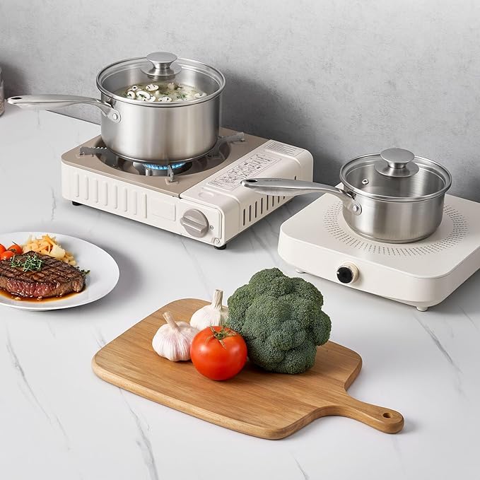 - Tri-Ply Bottom: Constructed with premium 304 stainless steel, aluminum core, and SUS430 magnetic base for rapid and even heat distribution. Non-coated interior saucepan ensures no risk of peeling — secure for everyday use
